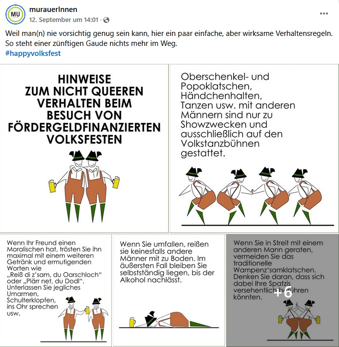 Als murauerInnen haben wir im September 2025 einen Blick auf die steirische Volkskultur geworfen, genauer gesagt auf die Frage, welche Volkskultur bei einem vom Land geförderten Event gezeigt wird und wer sich daran beteiligen darf. Letztlich ging es auch um die Frage, welche Organisationen mit einem Verkaufsstand Geld für ihre Vereinsarbeit lukrieren können.